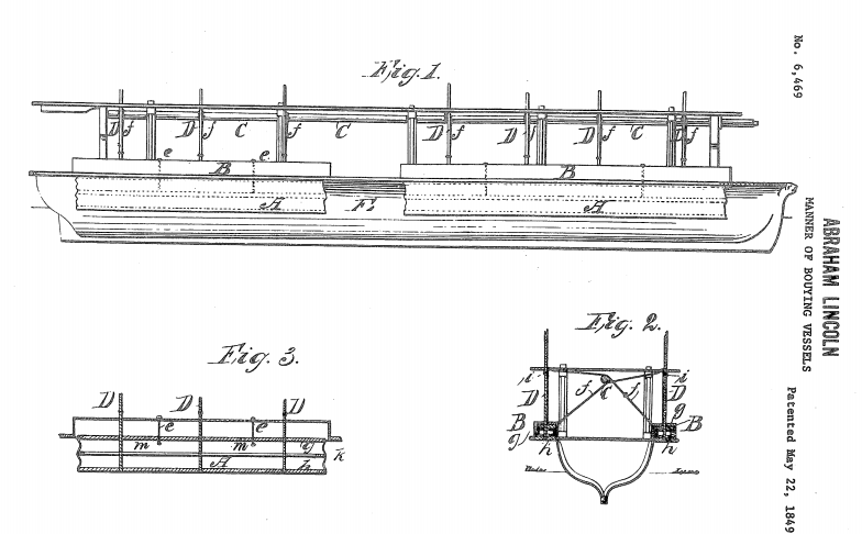 Abraham Lincoln fue el decimosexto presidente de los EE.UU desde 1861 hasta su asesinato en 1865. Sin duda se trata de uno de los más populares de la historia estadounidense y sí, también fue inventor. Durante su adolescencia y juventud navegó con frecuencia a lo largo del río Missisipi y en alguna ocasión llegó hasta Nueva Orleans desde Illinois donde residía. Con frecuencia se encontraba con el problema de que el barco encallaba debido a la existencia de bancos de arena. De hecho cuando comenzó su carrera política uno de sus principales objetivos era mejorar la navegabilidad del río Sangamon, afluente del río Illinois que a su vez desemboca en el Missisipi. Lincoln trató de diseñar un sistema que permitiera a los barcos que surcaban esos ríos superar los bancos de arena, sin necesidad de emplear la tremenda fuerza bruta que normalmente y como había contemplado, era necesario aplicar. Ideó un barco con un sistema de flotadores que se podían inflar cuando fuera necesario para poder superar sin tanto esfuerzo los bancos de arena. La solicitud de título “Buoying Vessels over Shoals” y número US6469 la presentó en 1847 aprovechando su estancia en Washington como representante en el congreso. La patente se concedió el 22 de mayo de 1849. En aquella época era preciso presentar un modelo de la invención junto con la solicitud, modelo que se ha conservado y se encuentra en uno de los museos de la “smithsonian institution”. Nunca se llegó a fabricar y los expertos opinan que probablemente no funcionaría. Abraham Lincoln siempre se sintió atraído por las invenciones y las patentes, trabajó como abogado en algún litigio relacionado con las mismas y dio una famosa conferencia sobre el tema especialmente recordada por su final: “The patent system added the fuel of interest to the fire of genius”.
