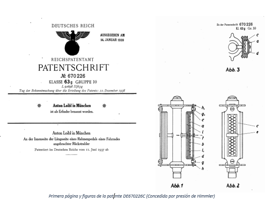 Si hablamos de patentes, política y Alemania, es inevitable hacer referencia al asunto de las “patentes que financiaron las SS“. La patente en cuestión es la de número DE670226C, solicitada por Anton Loibl (miembro de las SS y chófer de Hitler) y fue concedida por la Oficina de Patentes alemana a pesar de no cumplir con los requisitos de patentabilidad bajo presiones de Himmler. Posteriormente y con el fin de asegurar los ingresos para las SS, se decretó que la utilización del objeto de la misma (unos reflectantes para pedales de bicicleta) fuera obligatoria en toda Alemania. Los ingresos se utilizaron para financiar la Ahnenerbe (un instituto de estudios arqueológicos de las SS) y la Lebensborn (una asociación dedicada a la promoción de la llamada “raza aria”). La empresa que explotó la patente empleó “trabajo esclavo” y prisioneros de campos de concentración. En este artículo del diario “Der Spiegel” de 1963, se afirma que todavía en la década de los sesenta era obligatorio que las bicicletas de la policía de la República Federal Alemana llevaran instalados esos reflectores en los pedales.