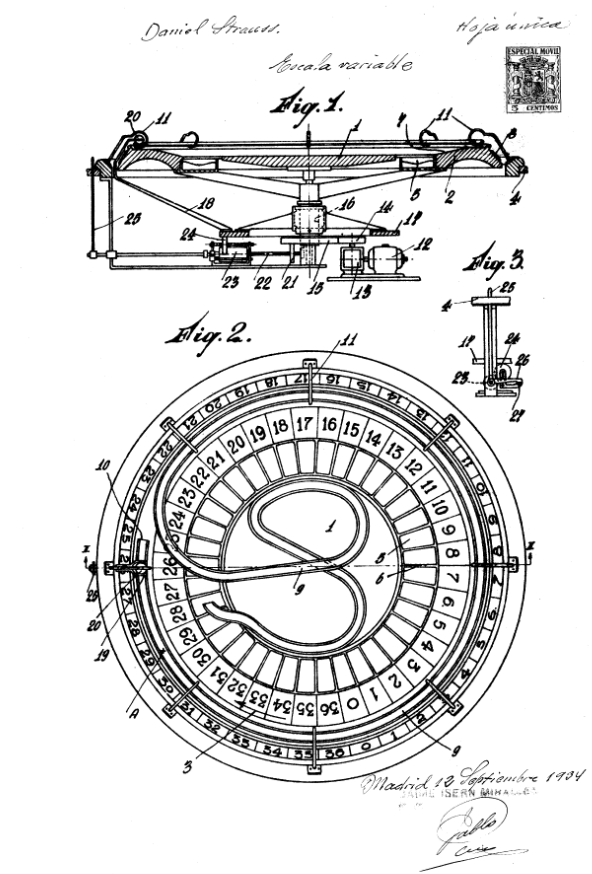 The “estraperlo” was a huge political scandal that brought about a crisis in the government of the Second Spanish Republic, causing the president Lerroux to step down. The “estraperlo” was a kind of roulette and the term was incorporated to the RAE dictionary to designate the black market of the postwar period. The “estraperlo” was patented and more information about the patent and the political scandal can be obtained in the entry I wrote for the blog of the OEPM.
