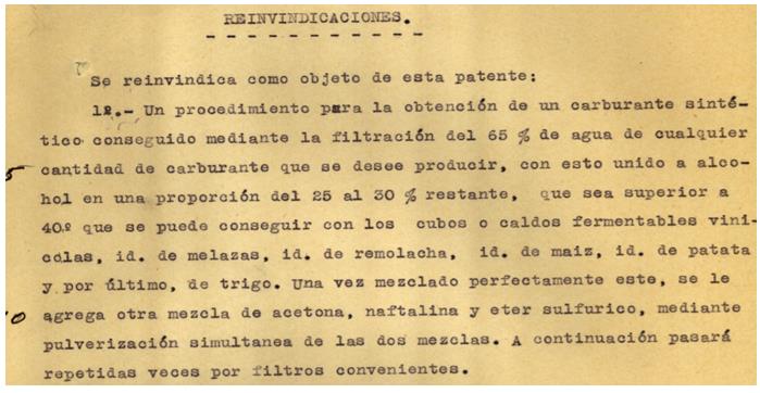 Patented formula ( ES139867) of the gasoline obtained from water and fermented vegetables