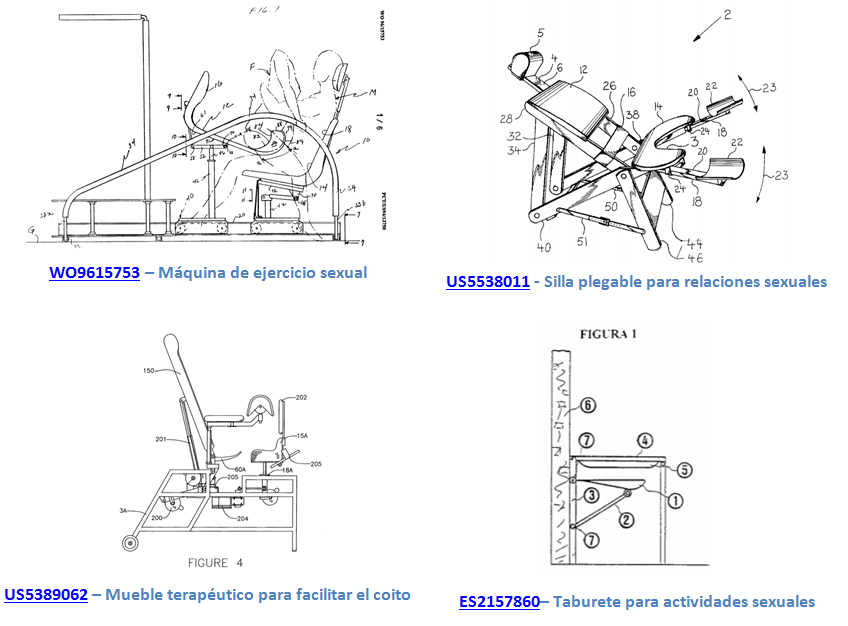 En la patente ES2157860 sobre un taburete para actividades sexuales, el inventor se muestra especialmente preocupado por los destrozos que mantener sexo en lugares poco habituales puede causar: