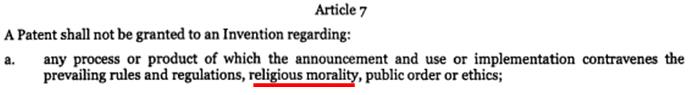 Antes de entrar de lleno en la materia quizás convendría recordar que aún hay países donde leyes religiosas determinan qué se puede y qué no se puede patentar: si en Europa se excluye la patentabilidad de “las utilizaciones de embriones humanos con fines industriales o comerciales” es por influencia de la religión cristiana. La ley de patentes de Indonesia explícitamente excluye la patentabilidad de las invenciones contrarias a la moralidad religiosa: