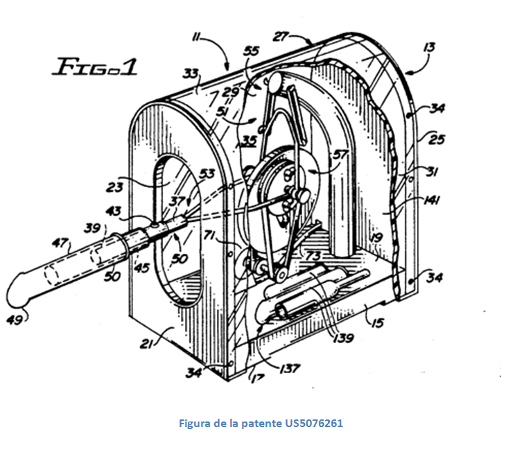 En esta patente US5076261 de título “aparato terapéutico accionado mediante motor”, aunque claramente se sigue haciendo referencia al uso “terapéutico”, no se esconde su empleo para la obtención de la satisfacción sexual.