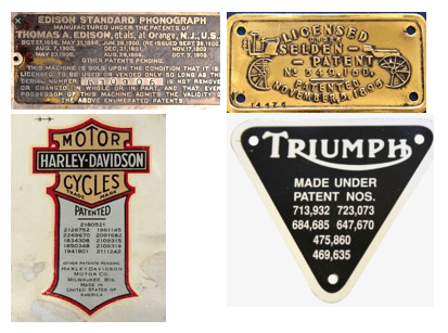The use of plates to indicate that a product is patented has been common since the first years of the patent system and some of those plates have become coveted objects for collectors.