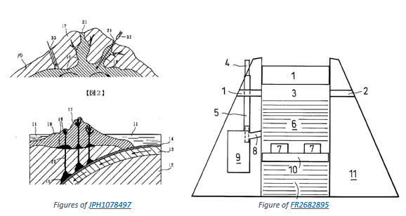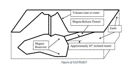 A technological sector in which patent documents with reference to volcanoes are particularly numerous is that of power generation. The document CN106452190 concerns a method for obtaining electrical energy by exploiting the difference in temperature between the lava expelled by a submarine volcano and the seawater. The method disclosed in US3967675 also uses the heat energy of underwater volcanoes to generate electricity. In JP2016070516, electrical energy is obtained from the heat of volcanic magma. Other documents disclosing similar methods are: US2015027721, hu0700416, KR20210082961, JP2003172247, JPH0480553.