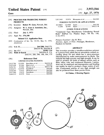 Como suele ocurrir con las patentes que protegen invenciones que suponen un gran salto tecnológico, ésta fue protagonista de numerosas vicisitudes. Para hacer valer su patente Gore presentó una demanda por infracción contra la empresa Garlock, Inc. Tras un procedimiento judicial muy complejo y prolongado, la patente fue anulada, aunque posteriormente se mantuvo su validez por el tribunal de casación.