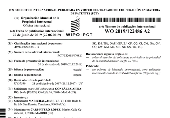 Example of a Uruguayan applicant that includes in the PCT application a Spanish national as applicant. The Spanish applicant works in the industrial property agency processing the application: WO2019122486A2