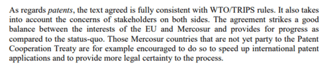 The text of the agreement includes a few lines devoted to the PCT agreement, indicating that MERCOSUR states will be encouraged to join the treaty: